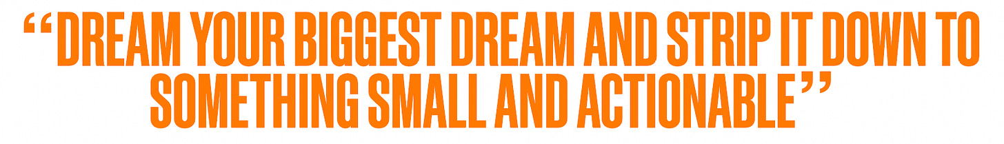 Just start and start small. Dream your biggest dream and strip it down to something small and actionable. Whether that’s one feature, one product, one Tiktok. The learning you will get from starting is something no funding can buy.